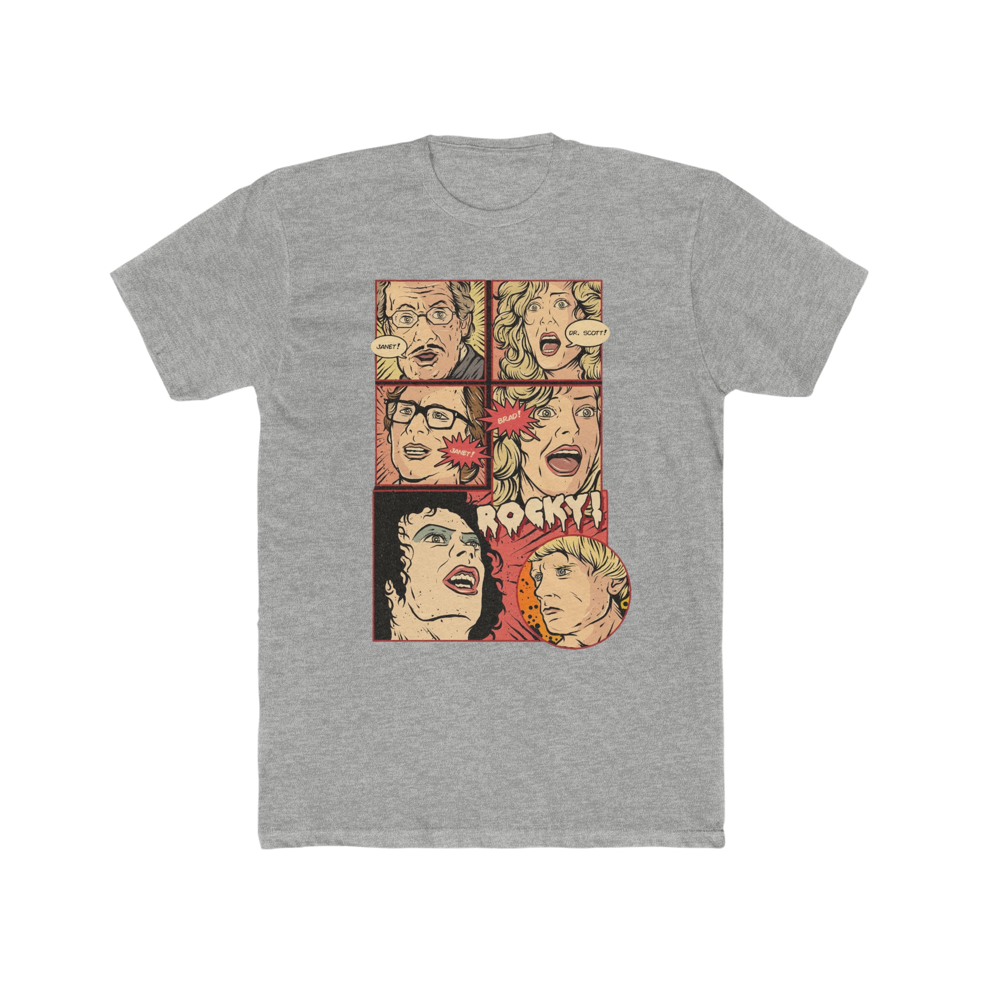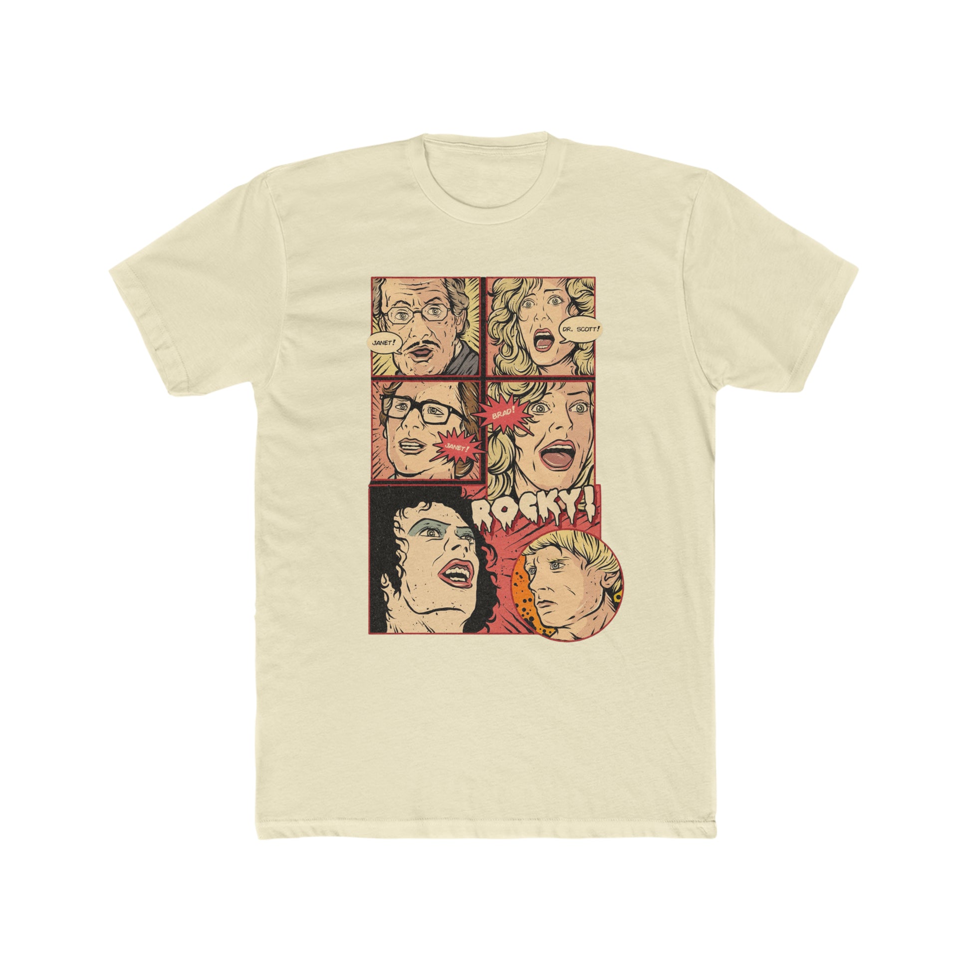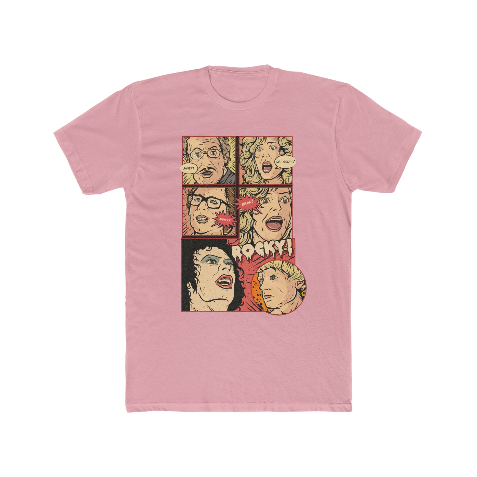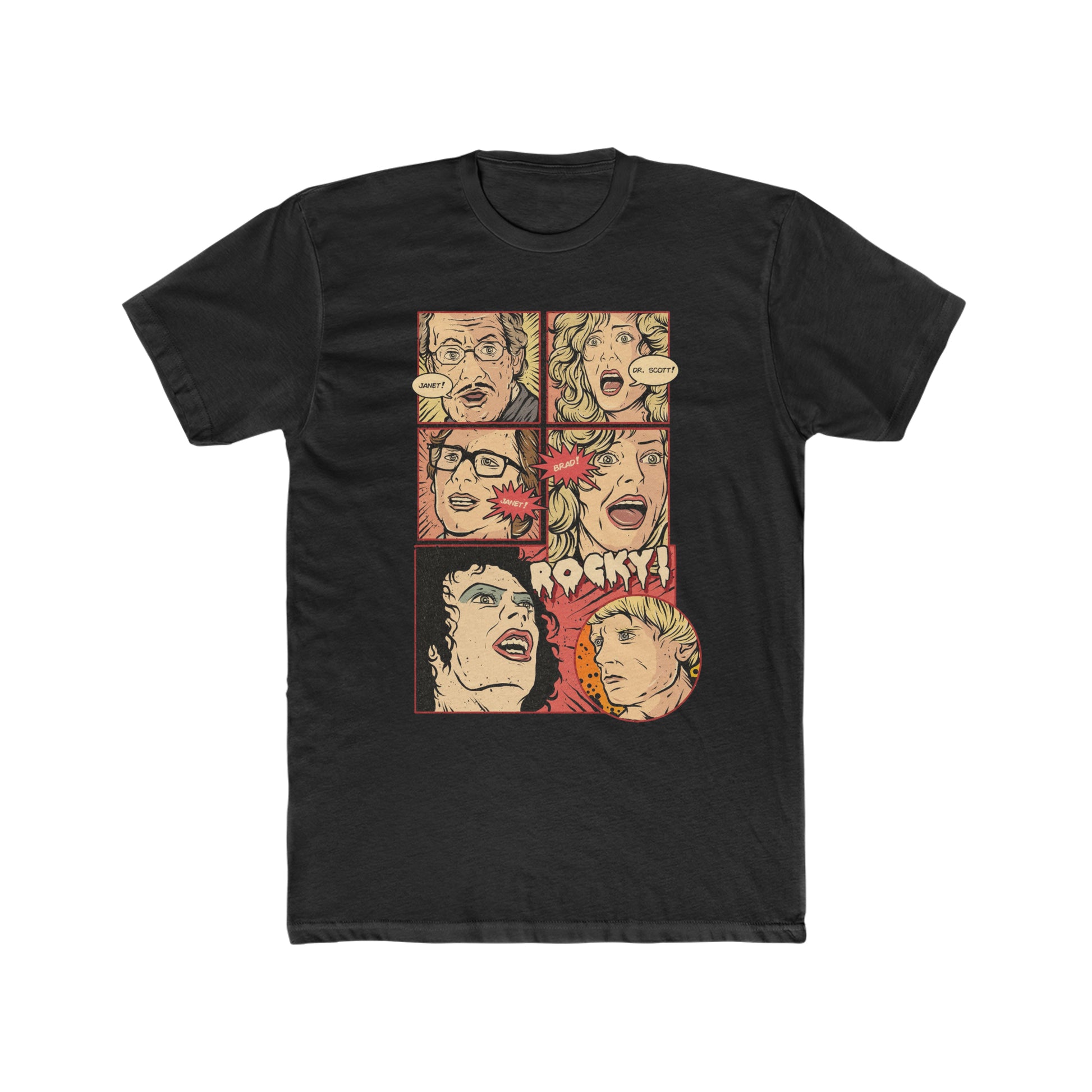 Rocky Horror Picture Show, Comic Book Artwork of Janet, Dr Scott, Janet, Brad Rocky, Cult Movie Classic Tee